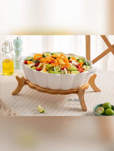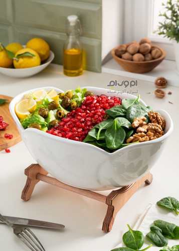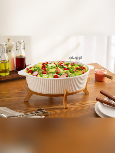 سالاد خوری سرامیکی بیضی لاله پایه چوبی