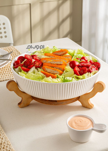 سالاد خوری سرامیکی بیضی خورشید پایه چوبی