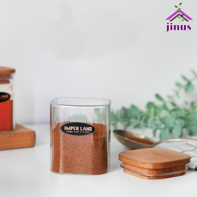 جا ادویه شیشهای با درب واشر دار چوبی مناسب برای انواع ادویه ها ، هل ، گل محمدی و... یکی از جذابیت های اینکار شفاف بودن آن است که باعث میشود مواد داخل آن به خوبی پیدا باشد.