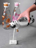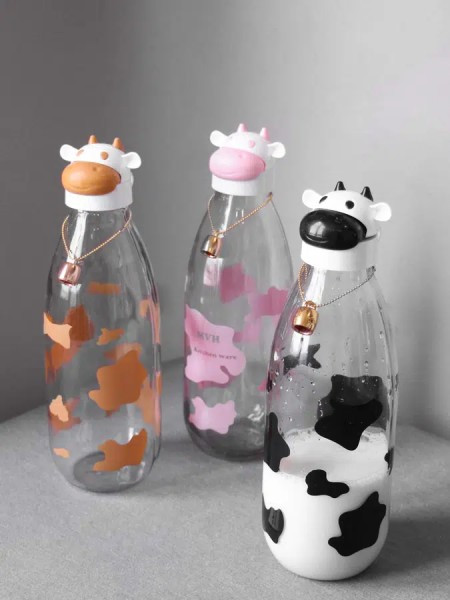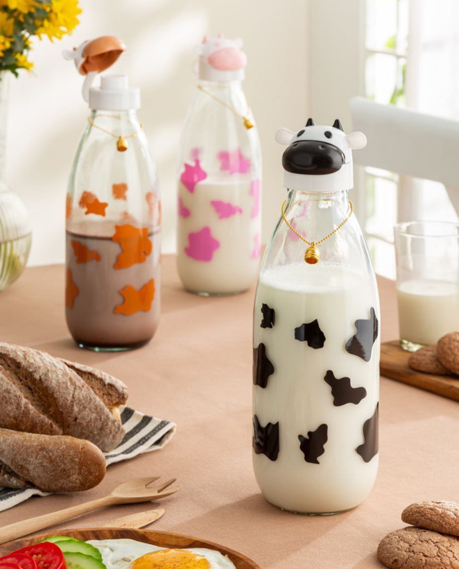 بطری شیر با طرح فانتزی سر گاو از جنس شیشه با درب پلاستیکی از ظروف نگهدارنده شیر می باشد که در طراحی آن خلاقانه ترین شکل ممکن از تصویر شیر و گاو مصور شده است. بطری دارای طرح پوست گاو است و درب بطری شبیه به سر گاو می باشد که در 3 رنگ قهوه ای ، مشکی و صورتی عرضه می گردد.