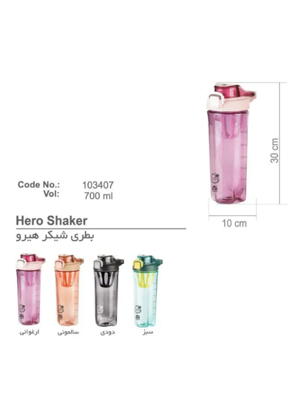 این شیکر از جنس PET بادوام ساخته شده که مقاومت بالایی در برابر ضربه و شکستگی دارد و برای استفاده روزمره یا در محیط های ورزشی کاملاً ایدهآل است. ویژگی برجسته این محصول، تحمل دمایی تا +۷۰ درجه سانتیگراد است که آن را برای نگهداری انواع نوشیدنیهای سرد و گرم مناسب میکند.